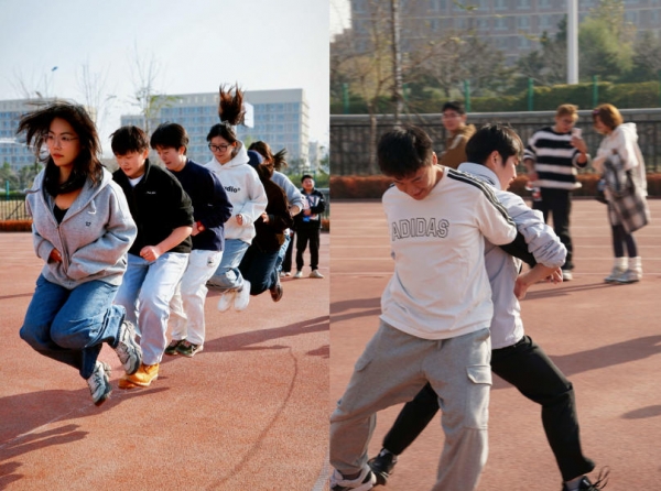 自由赛环节中,“扯龙尾”项目以灵活组队的形式点燃了学子们的竞技热情。6人一组的参赛队伍同台竞技,哨声一响,“龙头”便迅速出击,在人群中灵活穿梭寻找撕取其他队伍“龙尾”名牌的时机;“龙尾”则反应敏捷,时刻警惕巧妙闪避,全力守护团队“命脉”。一次次精彩的攻防、一个个敏捷的身影,让现场喝彩声此起彼伏,氛围持续升温。
